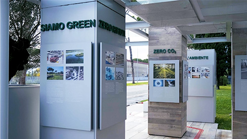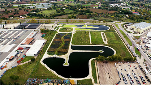 På Cassino-fabrikken samarbejder vores folk aktivt med naturen for at gøre anlægget bæredygtigt og beskytte biodiversiteten i området takket være biolake: et kunstigt bassin, der naturligt filtrerer alt det vand, der bruges i produktionsprocessen, ved hjælp af de plantearter, der lever omkring og i det.